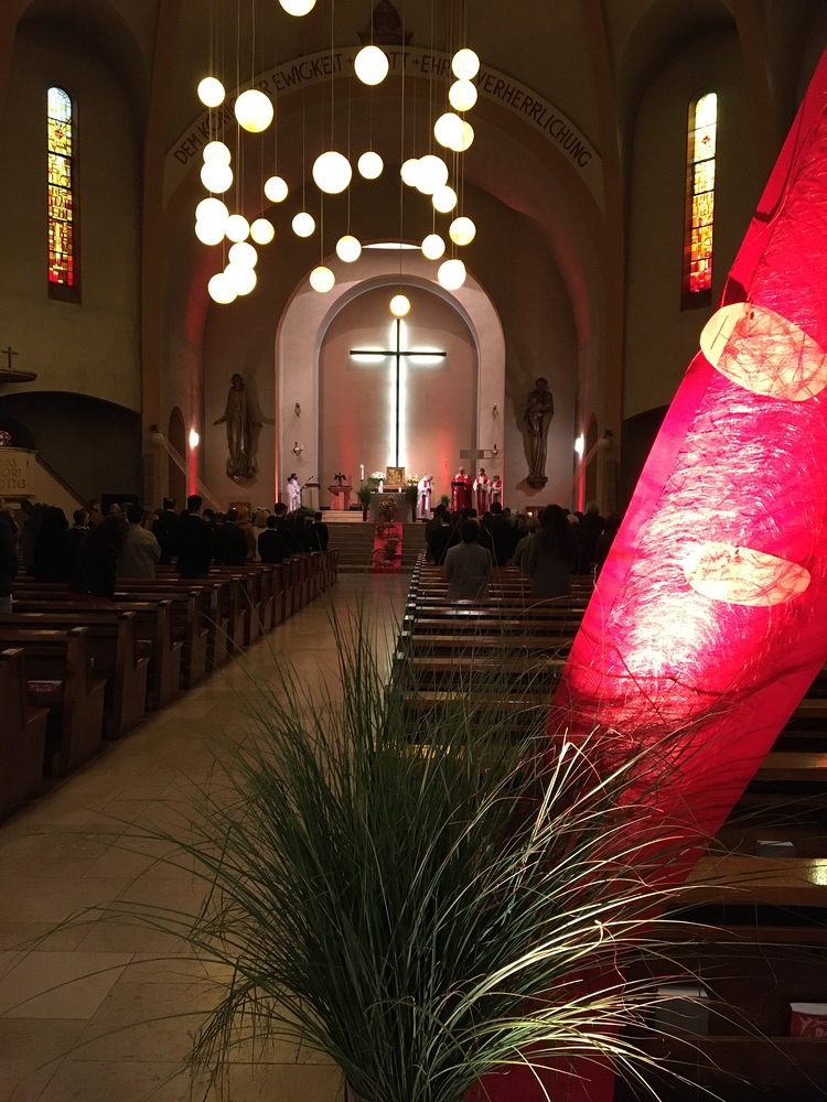 Die ersten Rufe zu einem Kirchenneubau Mitte 19. Jhd. konkretisierten sich erst im Jahre 1911 durch die Gründung eines Kirchenbauvereins, der allerdings im 1. Weltkrieg das gesammelte Geld durch Kriegsanleihen verlor. 1924 wurde der Verein neu gegründet, eifrig gesammelt und am 13.12.1931 dem Architekten Otto Linder aus München der Zuschlag erteilt. Am 3.5.1932 erfolgte der erste Spatenstich, am 14.10.1934 die feierliche Einweihung durch Bischof Waitz.