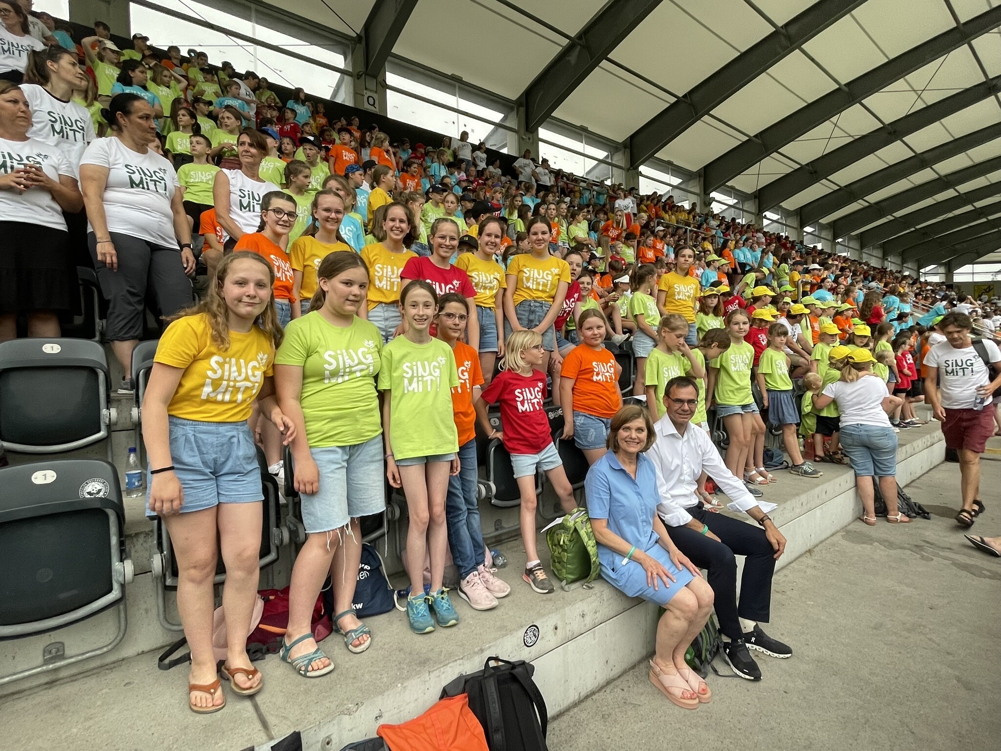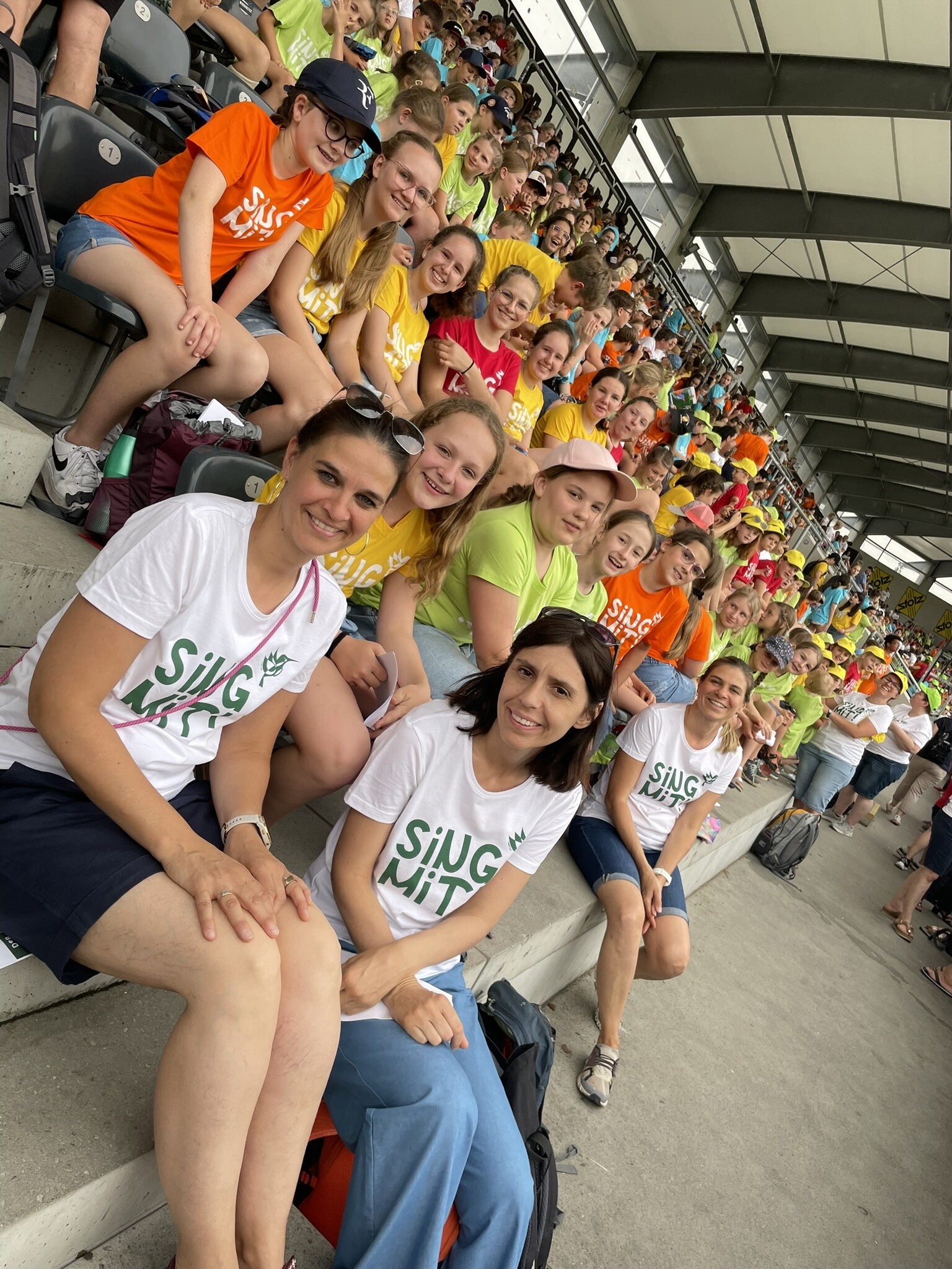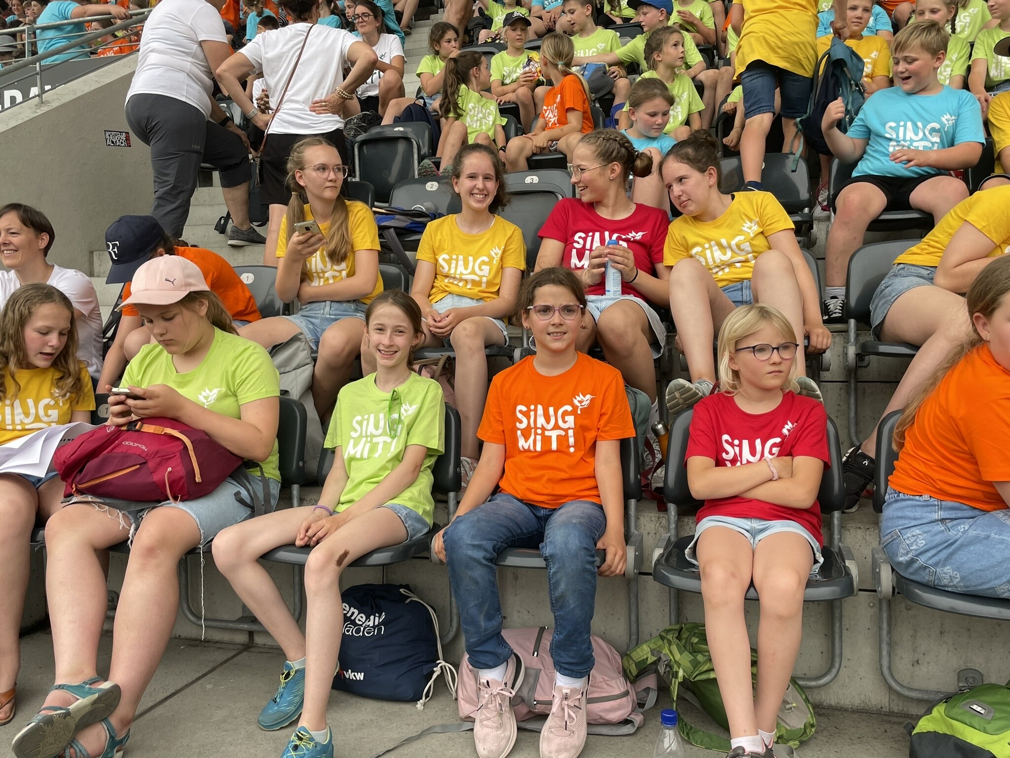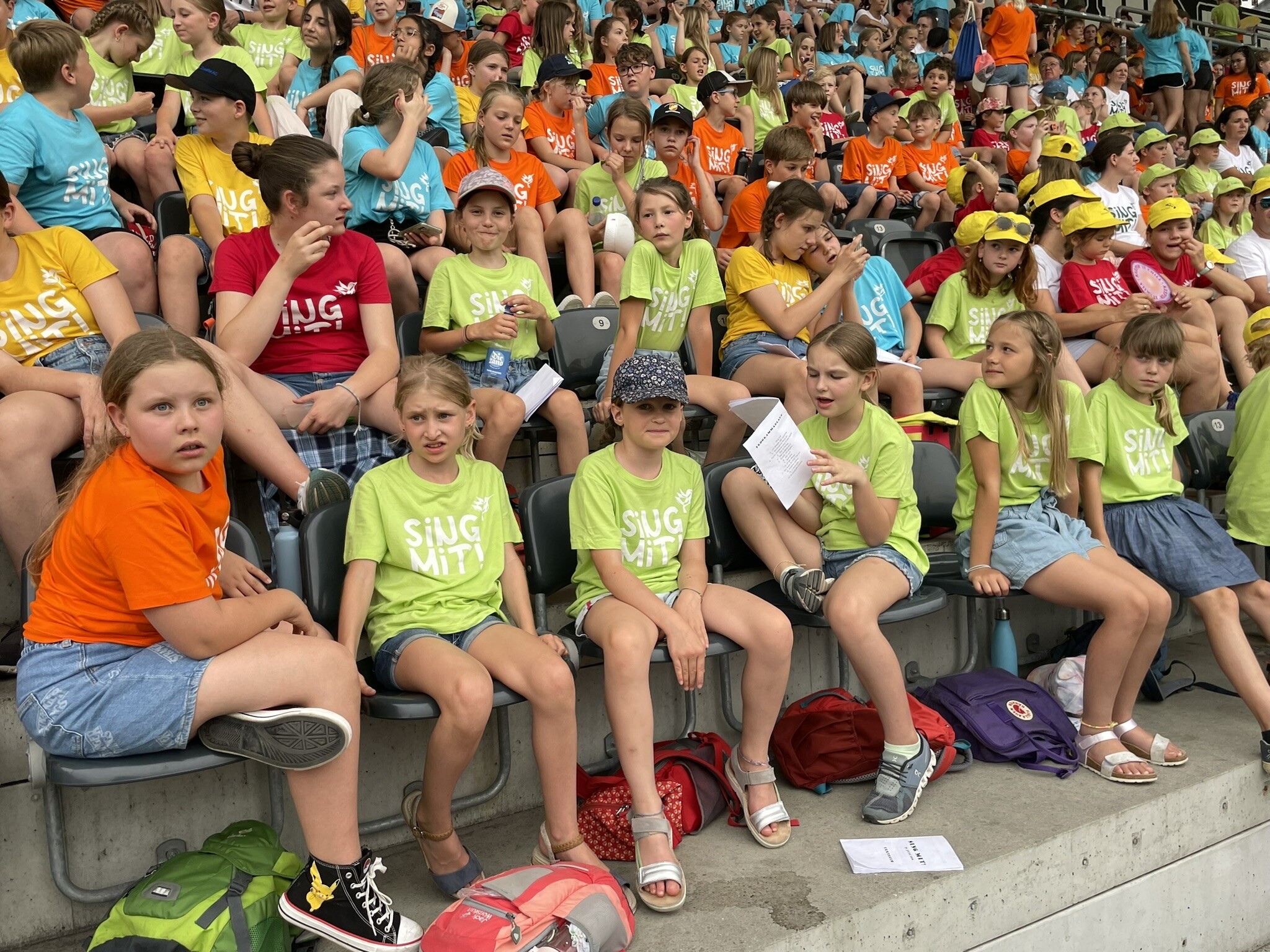 Am Samstag, den 29. Juni mischten wir uns unter die mehr als 2000 SängerInnen. Für dieses Konzert bereiteten wir in den letzten Monaten 15 Lieder mit Bewegungen ein. An erster Stelle stand dabei immer und jederzeit die Freude am gemeinsamen Singen. Durch dieses Erlebnis konnten wir in einer großen Gruppe die positive Wirkung des Singens spüren und erleben.