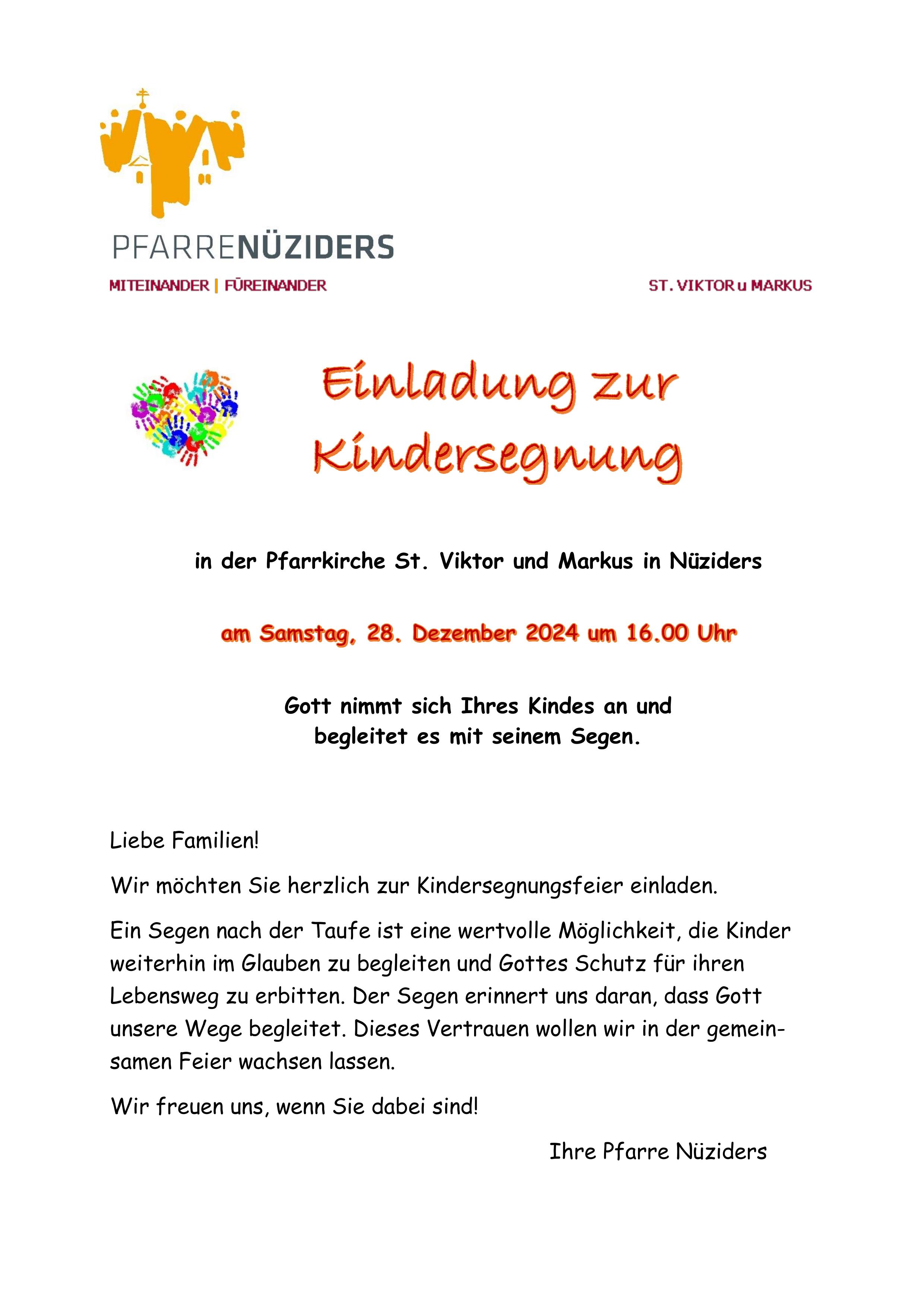 Einladung zur Kindersegnung