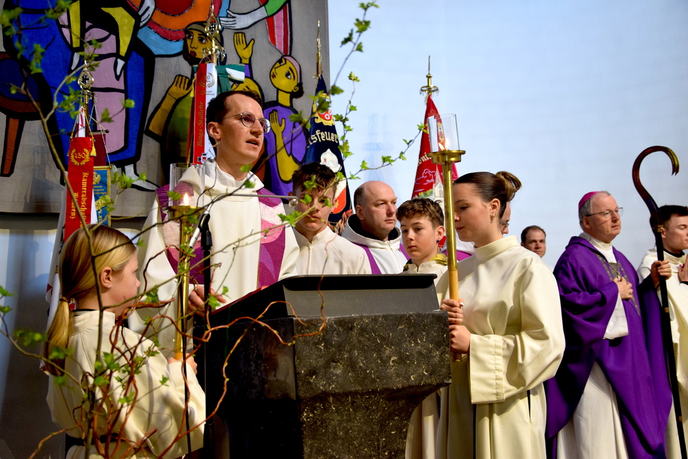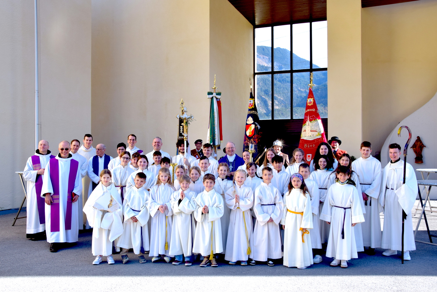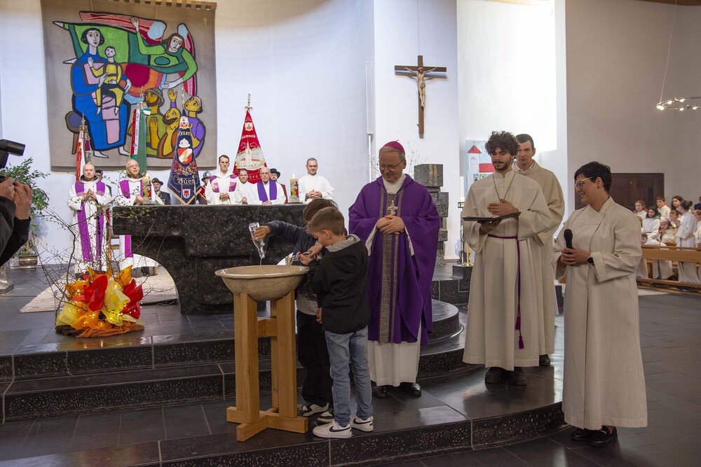 Das Geläute der Bürser Friedenskirche rief kürzlich Hunderte Gläubige aus dem Seelsorgeraum Bludenz zur Messfeier mit Diözesanbischof Benno Elbs. Die Tauferneuerung war in der Messfeier anlässlich der Visitation im Lebensraum Bludenz inhaltlich an die Tauferneuerung beim diözesanen Pfarrtag in Bregenz angelehnt. Die Erste Lesung - Mose beim brennenden Dornbusch - trugen Jugendliche in interpretativer Weise vor. Zur Gabenbereitung brachten Kinder Kerzen zum Altar. Musikalisch gestalteten den Gottesdienst der Kirchenchor Nüziders mit Mitgliedern des Kirchenchores Bludenz Heilig Kreuz sowie der Chor Effata und der Mädchenchor, beide aus Nüziders. An der Orgel spielte Larissa Scheier.