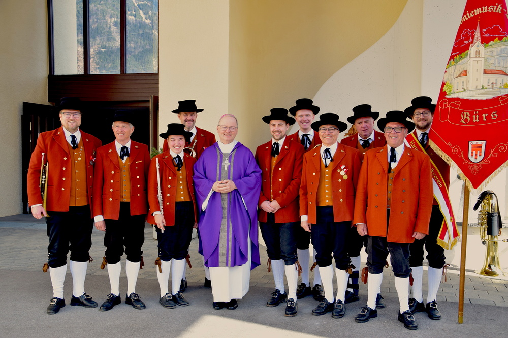 Als Konzelebranten fungierten Pfarrmoderator Pater Guido, Kaplan Jakob Geier und Pfarrer i. R. Karl Bleiberschnig. Unter den Mitfeiernden befanden sich auch Priorin Schwester Priska (Dominikanerinnenkloster Bludenz) und Guardian Pater Makary (Franziskanerkloster Bludenz), Bundesrat Christoph Thoma, die Bürgermeister Georg Bucher aus Bürs, Florian Themeßl-Huber aus Nüziders, Matthias Luger aus Stallehr und Andreas Batlogg aus Lorüns, Vereine sowie zahlreiche Ministrierende. Die Harmoniemusik Bürs spielte am Kirchplatz festlich auf.